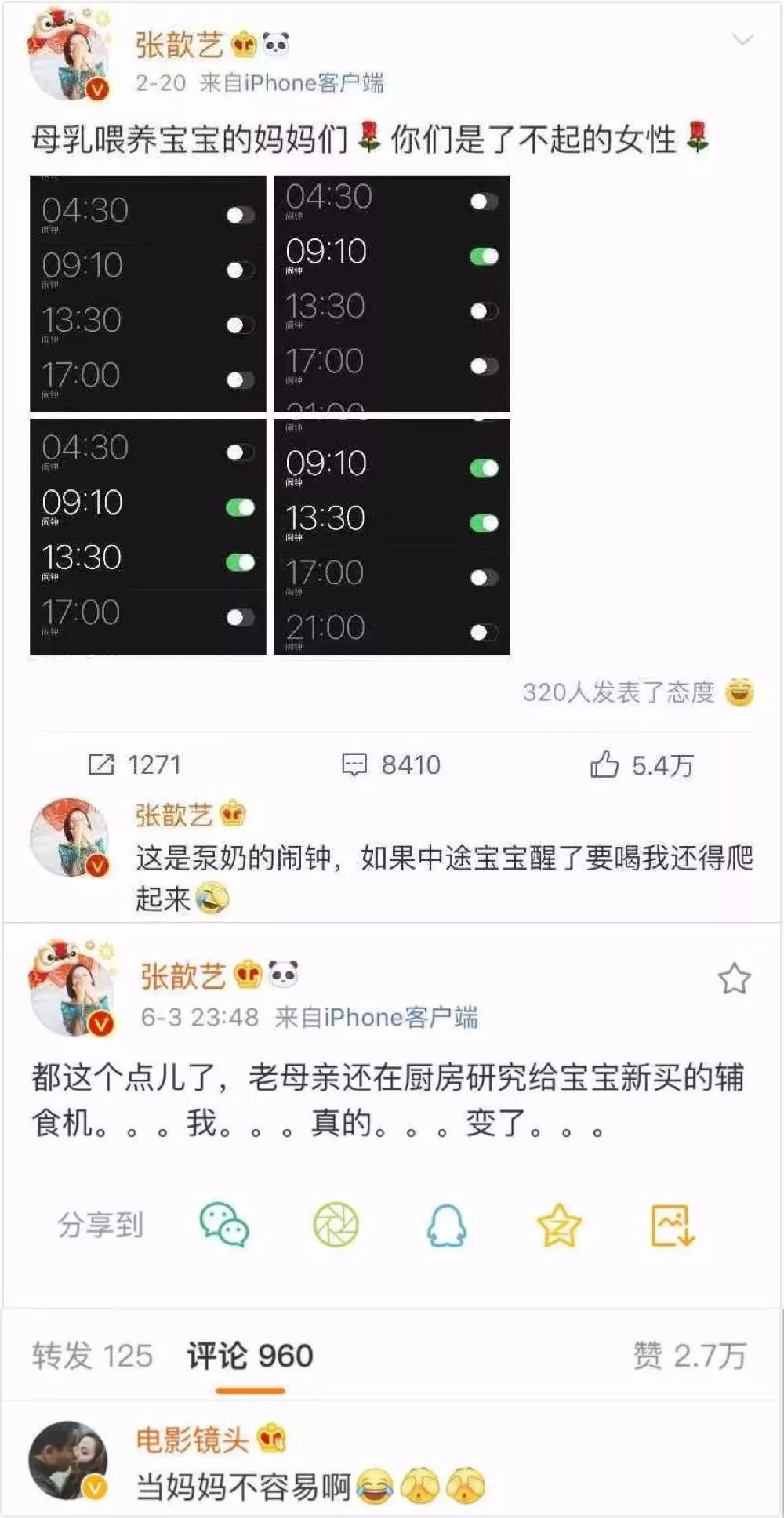 每隔三小时起床喂奶定的闹钟,深夜专心研究宝宝的辅食机,无一不说明她对孩子的爱,她从不觉得累,快乐的享受每天陪伴在孩子身边的状态。即使面对母乳喂养导致无法快速恢复身材,她也甘之如饴。