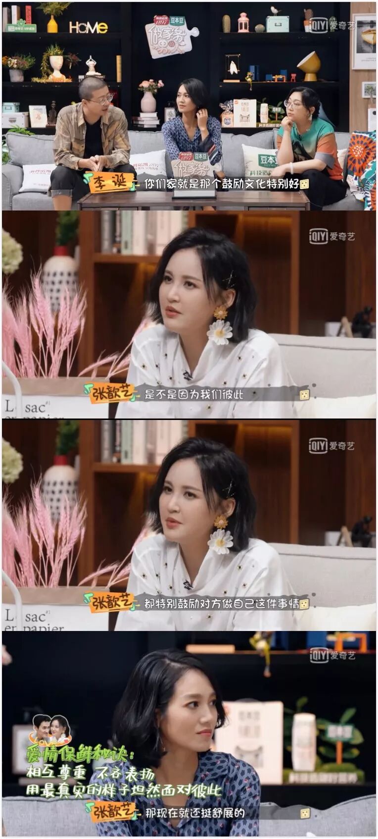 在《做家务的男人》节目中,张歆艺坦言之所以结婚三年还能“过的挺舒展”,最有帮助的一点就是相互鼓励支持。
