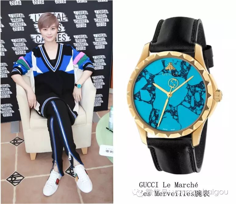 随后,春春又换上了Emilio Pucci2016秋冬系列套装,整体造型呈现着轻松明快的运动休闲风,大面积的几何色块与手腕上的Gucci Le Marché des Merveilles腕表相呼应,小编爱极了这一身搭配,活泼中不泛春春独特的俏皮感。