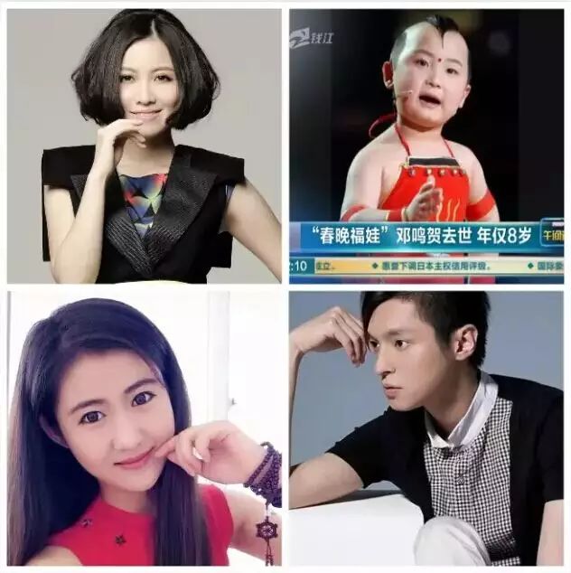 姚贝娜:中国流行女歌手,2015年1月16日因乳腺癌去世,年仅34岁。 安钧璨:中国台湾歌手,演员,2015年6月1日,因肝癌病发逝世,终年32岁。 李娜:被称为最美癌症女孩,登陆浙江卫视中国梦想秀备受关注,2月8日因病离世,年轻的生命定格在20岁这个最美的年纪。 邓鸣贺:2013年登上中央电视台春节联欢晚会。2015年4月28日因白血病复发,抢救无效逝世,年仅8岁