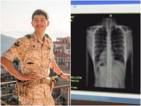 昨天还有台湾的医生站出来说,宋仲基在剧中照的X光藏有玄机。从X光来看,“宋仲基有器官反转症,代表他的心脏在右边,和一般人的左边不同”,所以之后如果剧情演到他中枪的话,一定会因为反转症救他一命。