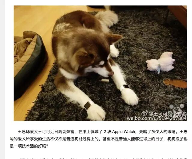 据说思聪也是爱狗的人啊~他家狗都有2块Apple Watch了...
