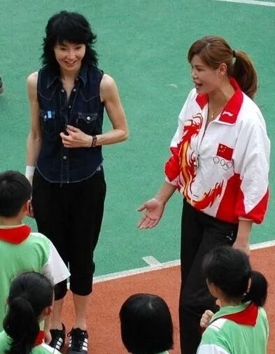 和别人的合照,感觉她整体的造型显得并不是特别的好看,特别是这个时候脸上画的妆感觉更没有,化妆品没有太大的区别,而且这个时候显得脸就是比较宽的那一种,整个人的身体又是比较瘦。