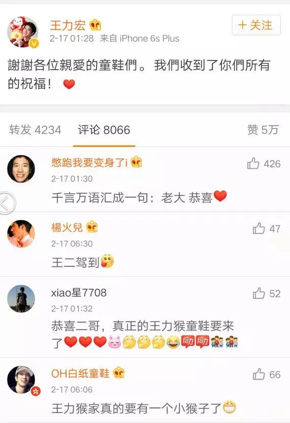 歌手王力宏结婚2年多,育有一个1岁半的女儿,今日更在社交平台亲证妻子已怀二胎,网友调侃“王力猴要有小猴子啦”!