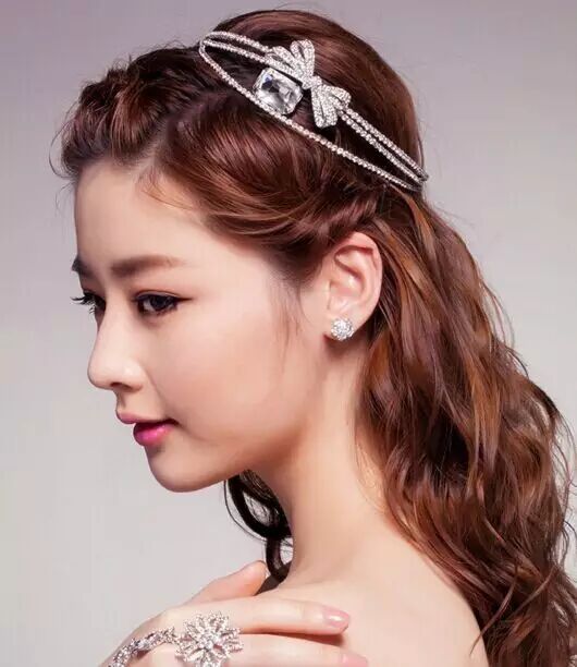发型三:把头发高高挽起,形成较大的花苞头,这一款韩式新娘发型看起来很简单,但却很有味道 ,特别是发间那如满天星星的发饰,起到点睛作用,美到让人移不开眼睛。