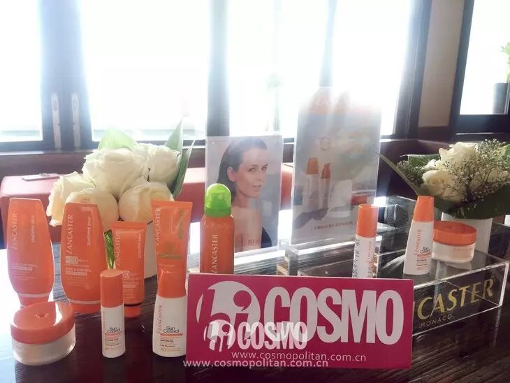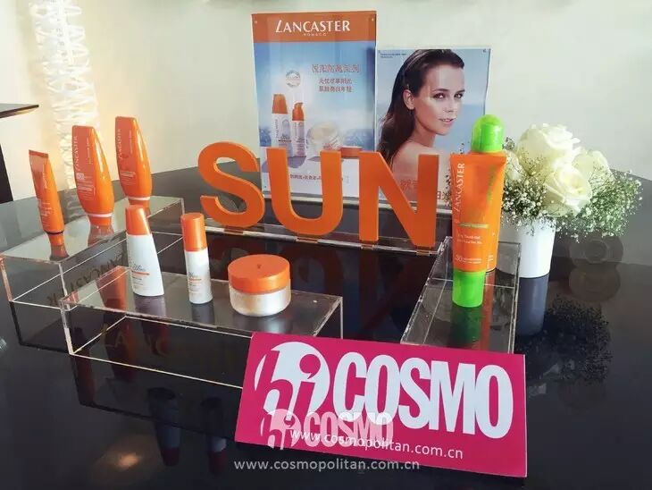 活动现场,在马尔代夫的艳阳下,全新的Lancaster悦阳青春无限好全光谱防晒系列产品则穿插其间,在水晶块的光线折射下散发出健康光彩!