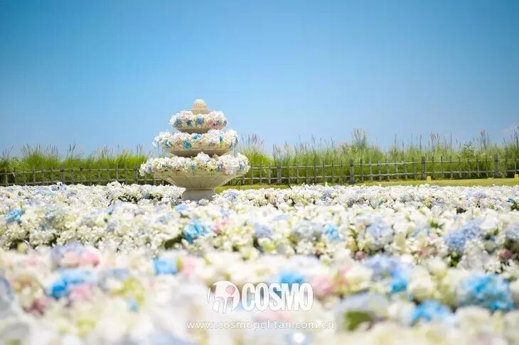 俩人的婚礼现场就是玫瑰的海洋,这家酒店的无敌海景和Spa可是相当有名哦!
