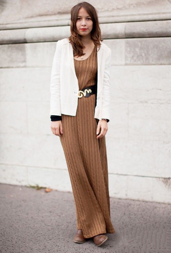 当然,针织的长裙也很适合,要记得搭配一条跳色的腰带,突显腰线的同时,还能拉长下半身的比例~
