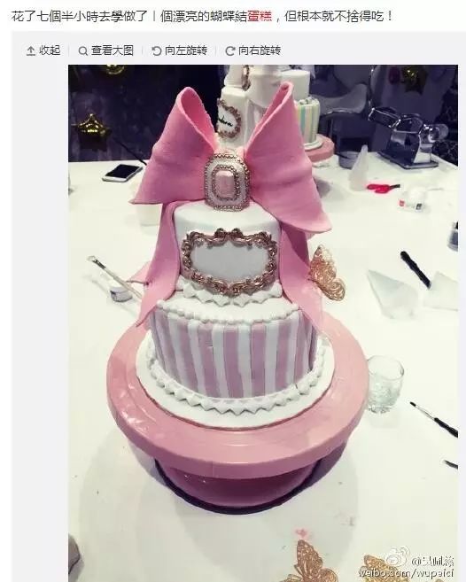 去年底更是晒出一张她花了七个半小时学做的蝴蝶结蛋糕,说根本舍不得吃!