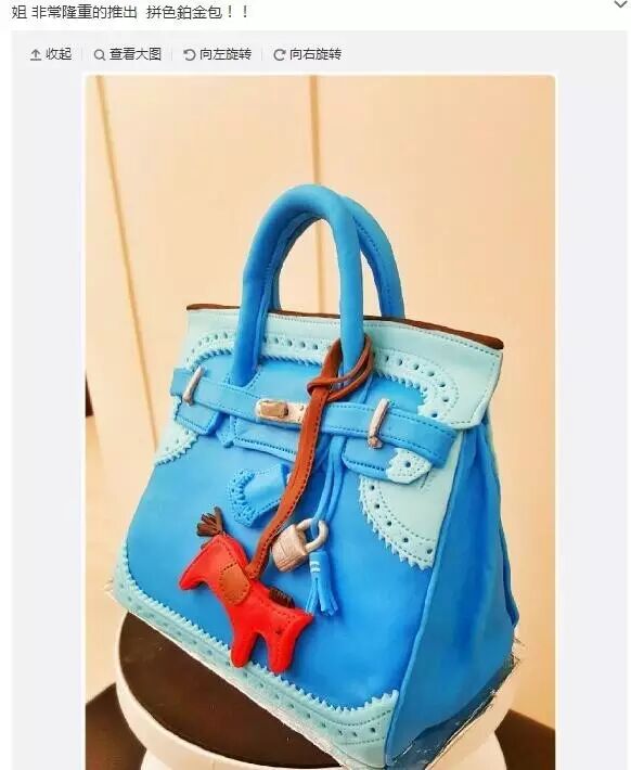 超级逼真的翻糖爱马仕Kelly包蛋糕,红色包包是真品,但黄包里面夹着巧克力蛋糕。从送给罗志祥的球鞋蛋糕,超级逼真的三叶草,阿迪要给广告费!