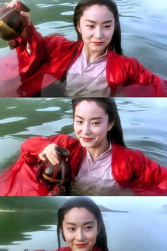当林青霞一袭红衣从水中升起,仰头饮尽壶中酒,长发湿漉,眼神里一半是睥睨天下的霸气,一半是洞悉世情的寂寥。