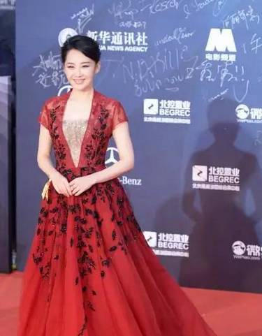 许晴一袭深V拖地红长裙,美呆了~