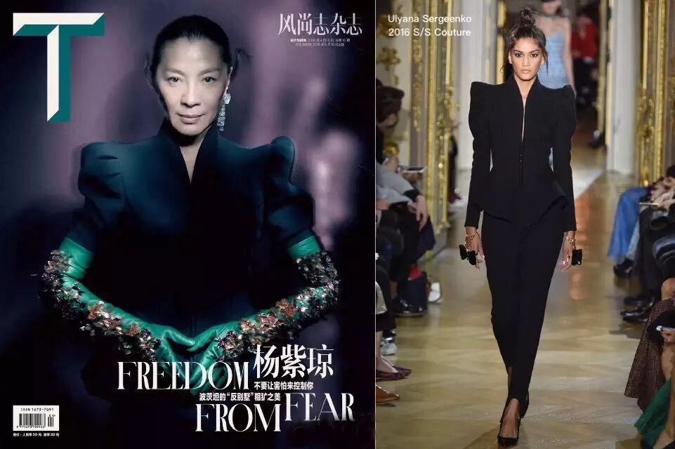 杨紫琼身穿Ulyana Sergeenko 2016春夏高定系列登上T杂志四月号,真是一本打算朝高逼格方向做的杂志,鬼魅感十足~