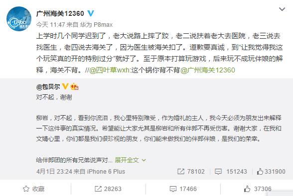 昨天晚上,包贝尔也发了一条长文,又是道歉又是感谢