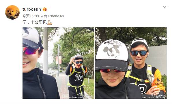 3月17日,孙俪在微博晒同邓超跑十公里的照片,并写道:“早,十公里见。”