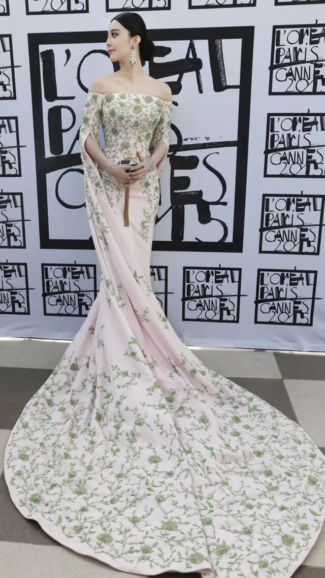 范爷在各种红毯上,量身定制的美裙都是中袖遮手臂的!