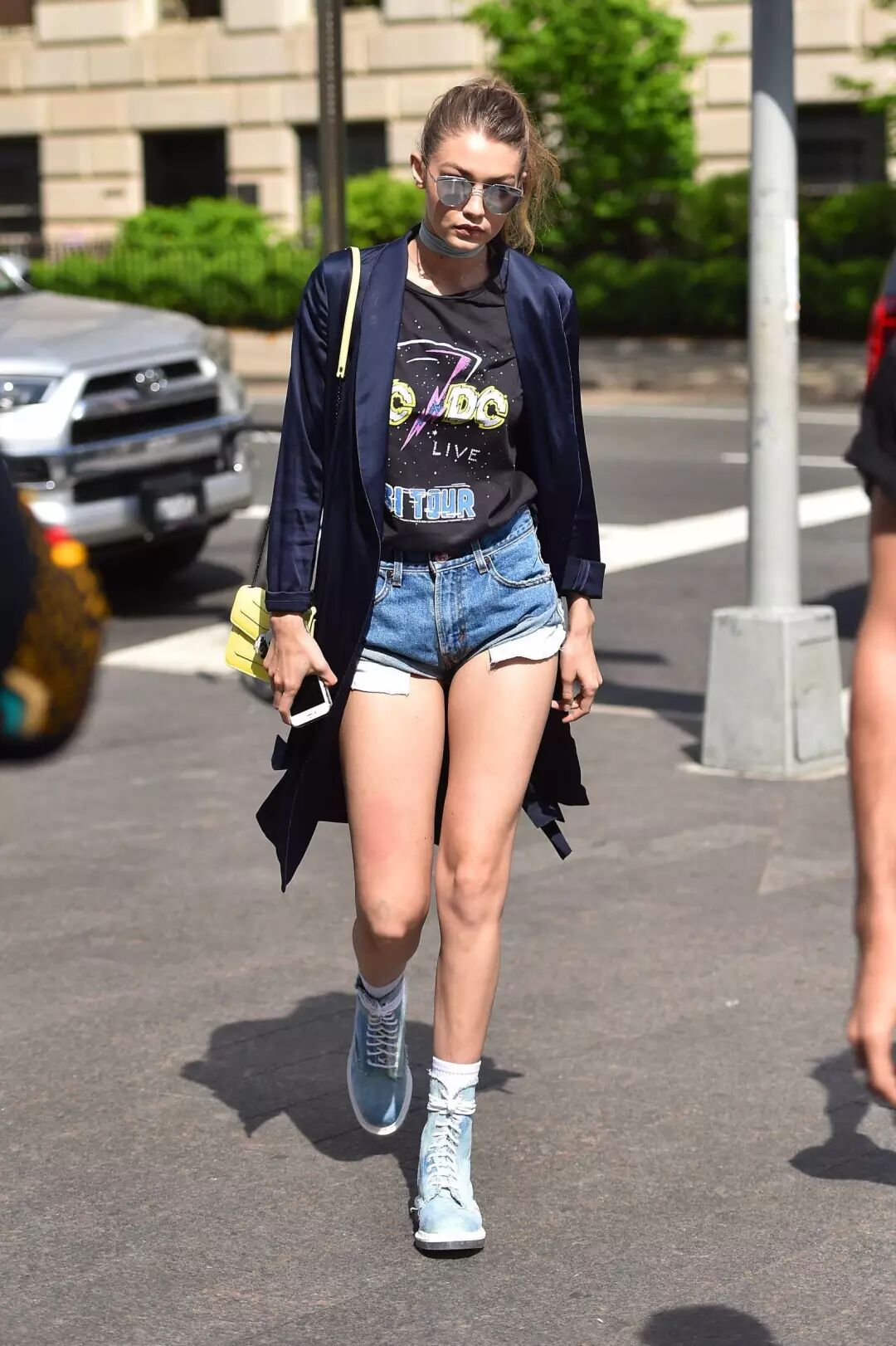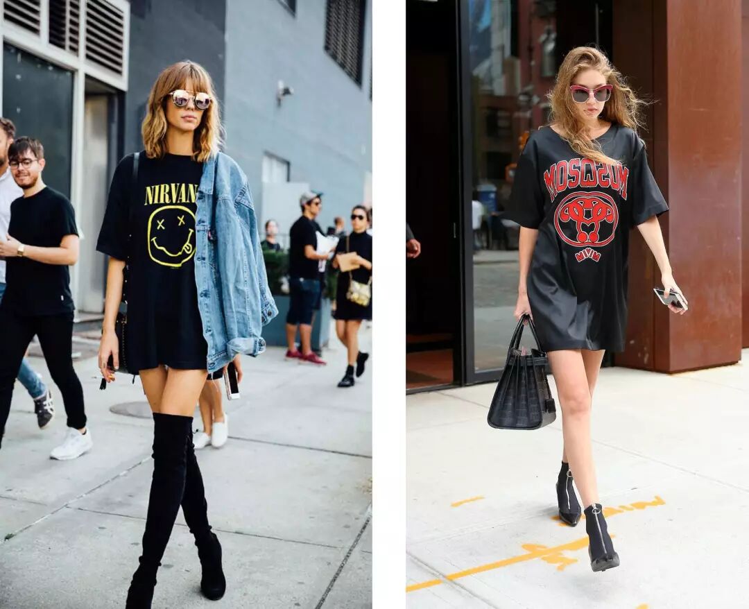 中长款T恤是调整上半身比例的绝佳单品。可以选择长及大腿根部的oversized长T恤,打造衣服一下都是腿,不仅突出双腿,更让人忽视上半身部分。其中黑色最显瘦,你懂的。
