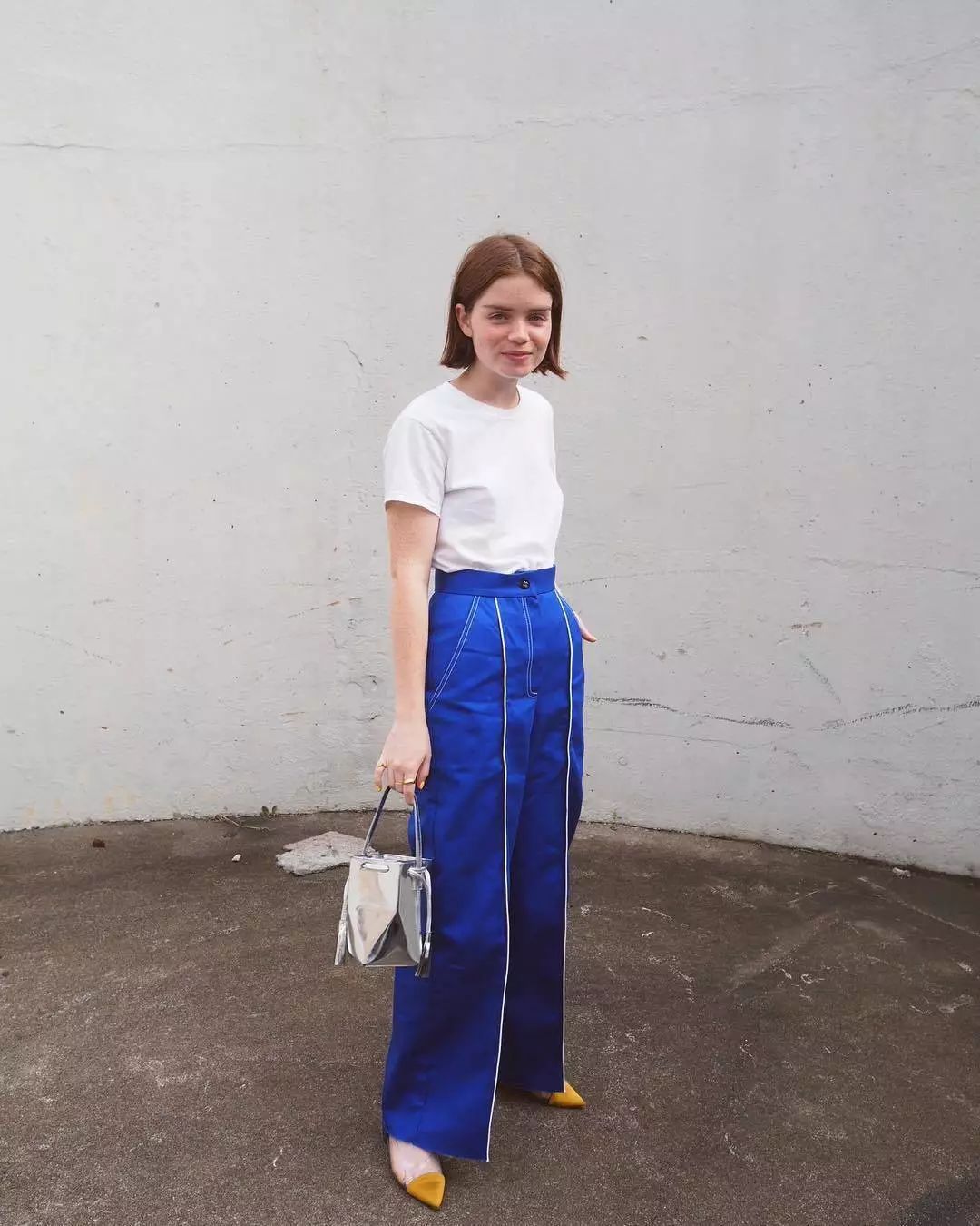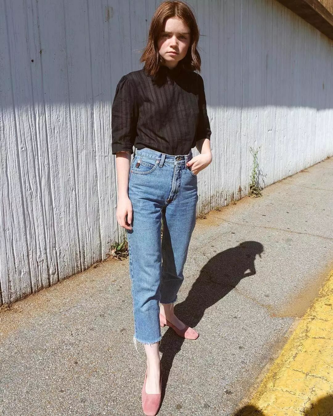 现在很火的矮个子博主Reese Blutstein同样爱穿高腰裤。