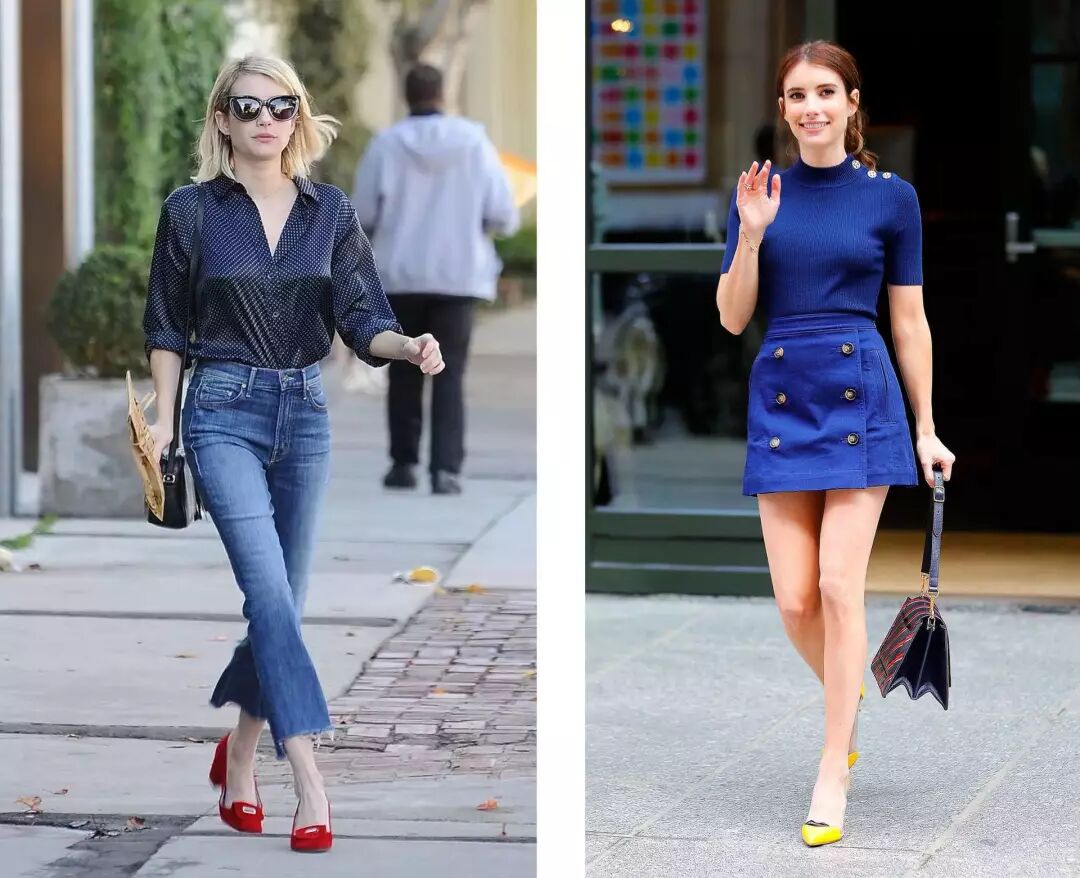 无论是明星Emma Roberts,还是博主Miroslava Duma,她们都特别爱穿高腰裤,她们有个共同点就是身高都是一米五几,可见高腰线对矮个子女生的重要性。