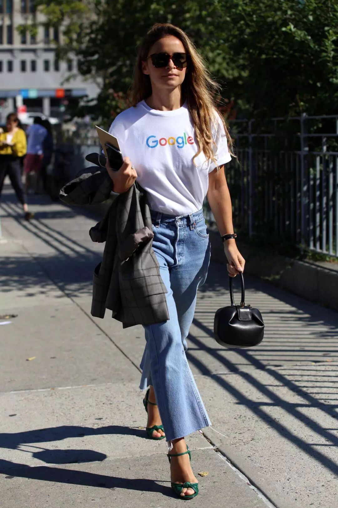 喇叭裤是修饰小腿粗的的最佳裤型,选择一条高腰喇叭裤搭配简单白T,让你显高显瘦的同时还很时髦!