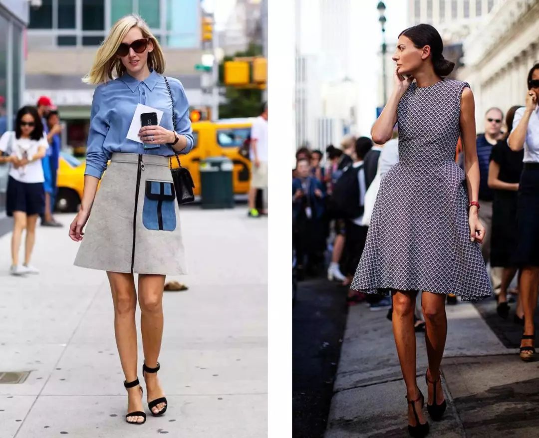 首先是面料要挺括,越是挺括,越可以用裙子的剪裁掩饰臀部的宽度;其次是长度要盖过粗大腿,避免大腿的粗壮加重了横向视觉。