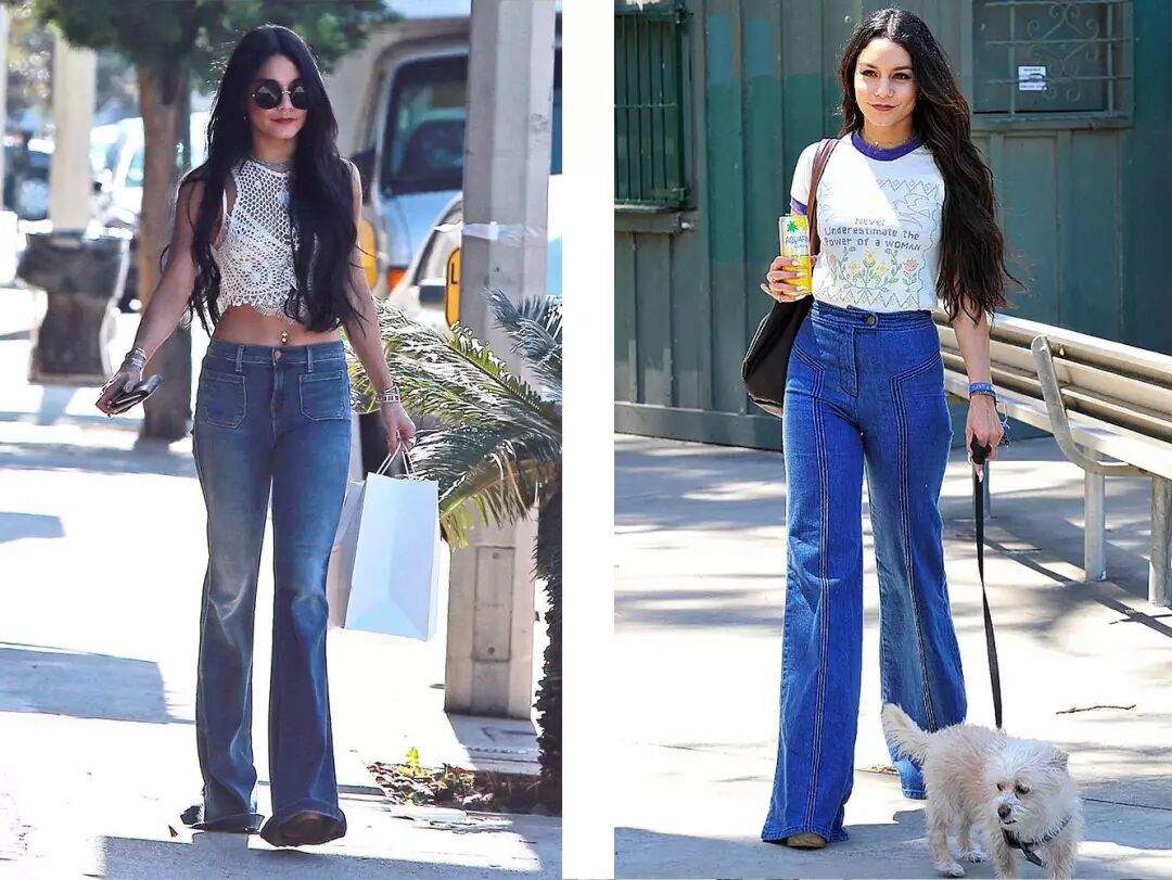 在喇叭裤里藏一对高跟鞋瞬间拔高,视觉上腿可以从腰部延伸到地面。你还看得出Vanessa Hudgens只有一米五几吗?
