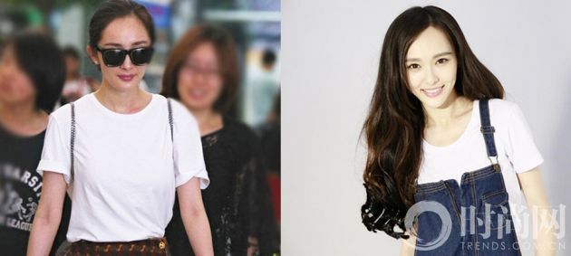 有时候真的想要仰天大啸三声:为什么这个世界这么看脸!最简单不过的白 T 穿到她们俩身上都爱发光!大幂幂完全青春高中生,糖糖背带裤减龄满分。所以人丑连白 T 都嫌弃你。
