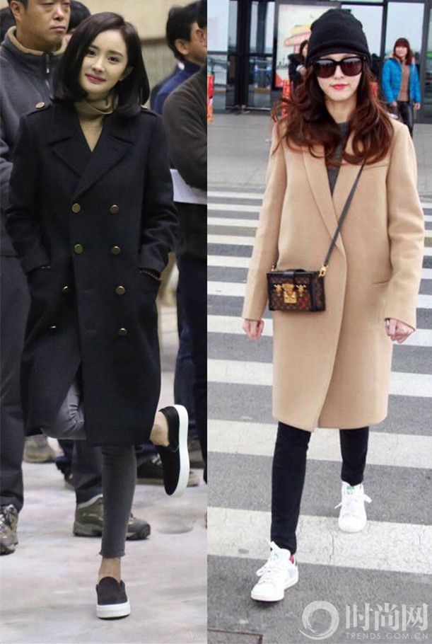 这次换大幂幂穿黑色,糖糖则穿了温暖的驼色,一个干练一个温柔,互补的闺蜜情最长久。