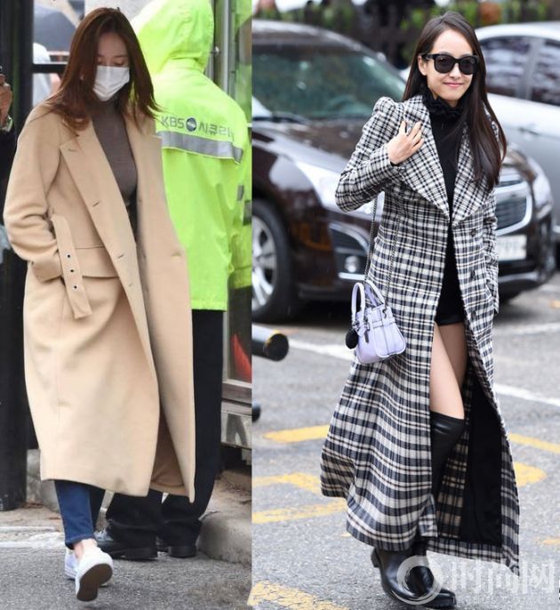 及踝大衣超级拉风~水晶一如既往的高冷出行,宋茜则是甜美微笑,一冷一热最适合做闺蜜了。