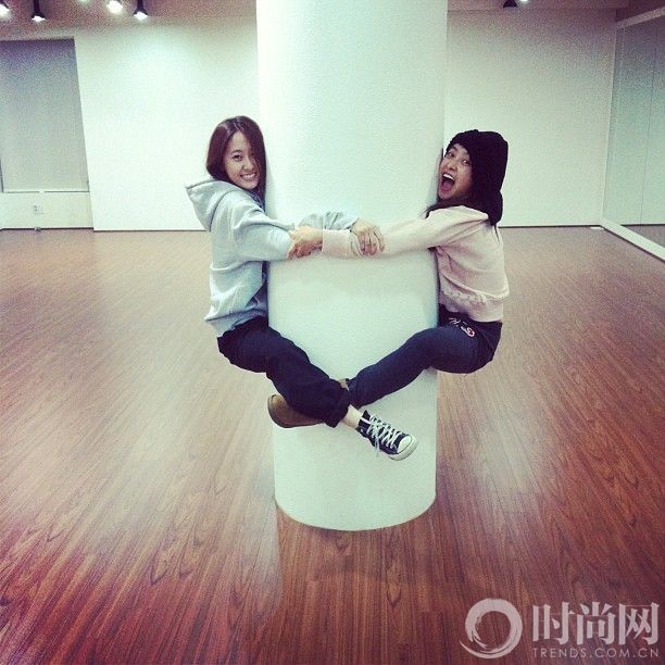 其实水晶在宋茜面前一直都是个柔弱的小女生姿态,累了就去靠她肩膀。