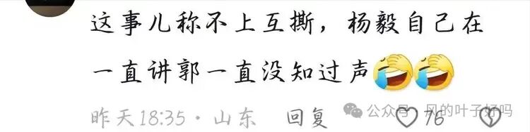 有人发言“这事情也算不上是互撕,因为杨议是在唱独角戏,郭德纲一直都没有吭过声”。