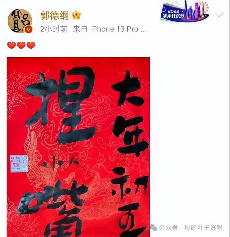 直到这件事情慢慢地落幕时,郭德纲在大年初五发布了“大年初五,捏小人嘴”的字画。