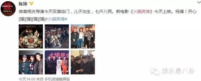 4月1日,《火锅英雄》全国上映。就在当天,导演杨庆喜获麟儿,真的是双喜临门哈。杨家宝宝真会挑日子出生啊。