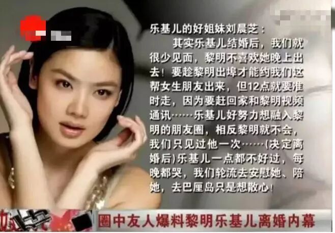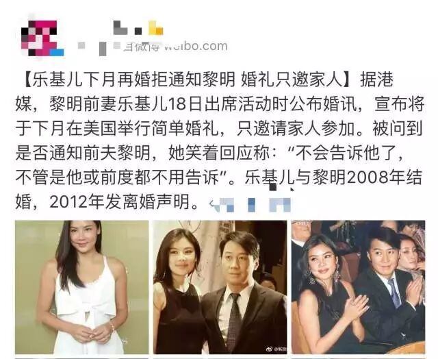 当时两人离婚的时候,乐基儿说会把黎明当作亲人,后来乐基儿再度结婚的时候,乐基儿表示不会邀请黎明。