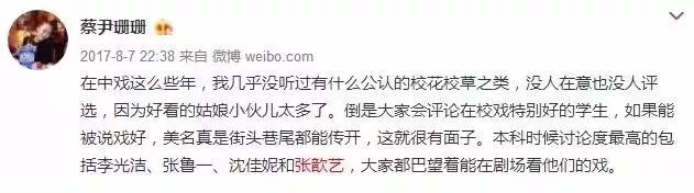 此前,中戏老师蔡尹珊珊回忆当年在学校里的时光,就曾表示,张歆艺演技很好,在学校的时候大家都巴望着能在剧场看到她的戏。