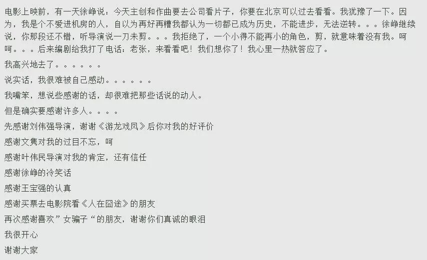 只是那个时候还流行写微博,她也是挺“虎”的,就把《人在囧途》里的一个小插曲给写出来了,连“剪了就是没有我”这种话都说出来了。