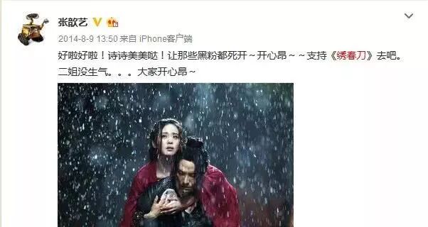 另外,因为宣传电影《绣春刀》,但没有@主演刘诗诗,张歆艺也在微博中被网友诟病。为了回应这个事件,她随后又接连发声,表示跟刘诗诗不熟。