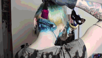 H:染发膏很容易不小心沾到脸上的皮肤,所以在染发前一定要在发际线的边缘和耳朵上涂抹凡士林。还有一定要穿一件烂衣服染头发,以及染发剂飞到地板上记得立马擦掉,不然就会留下印子。