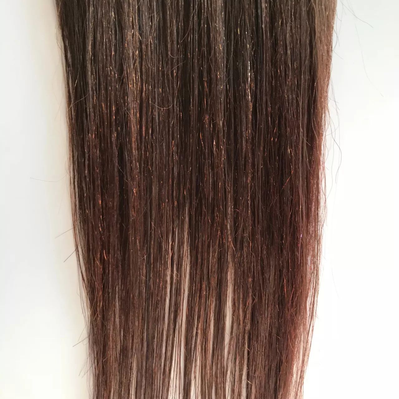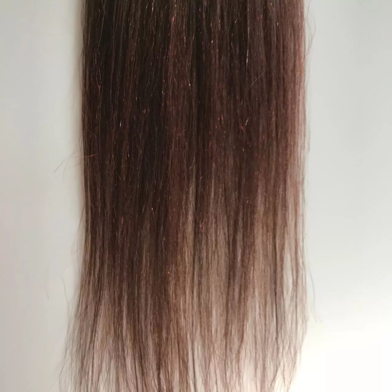 【显色度】从照片中可以看出,栗色的头发基本都已经变成棕红色,感觉有头发上覆盖了一层朦朦的粉色,说明显色度好不错,而且使用后头发变得亮泽了许多。