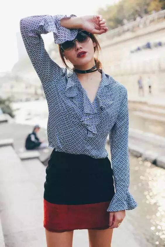 一字肩的上衣搭配A字裙也会显得很清纯可人、微风拂面。满满的荷尔蒙散发出来了呀~