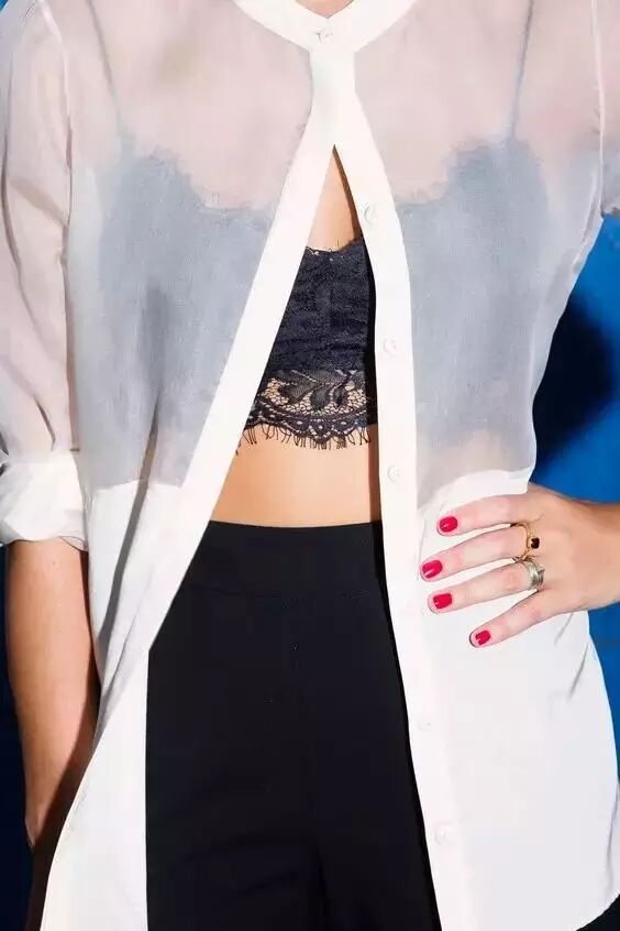 黑色果然是透视装最百搭的款,那就深V到底吧~