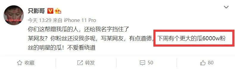 在他10.26日20.33分发文后,他也在23.02分,更新了最新的消息,他是这么说的:“有大瓜,说的就是你。”