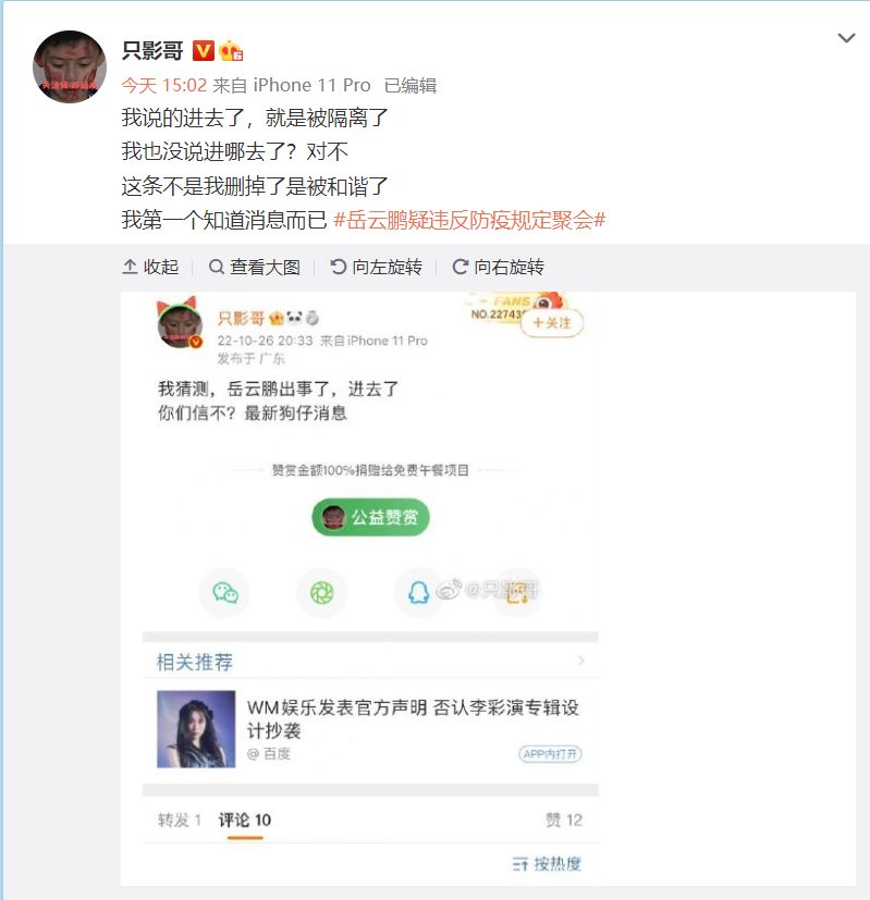 只是,在被啪啪打脸后,嘴硬的不是岳云鹏,而是那位爆料博主只影哥。