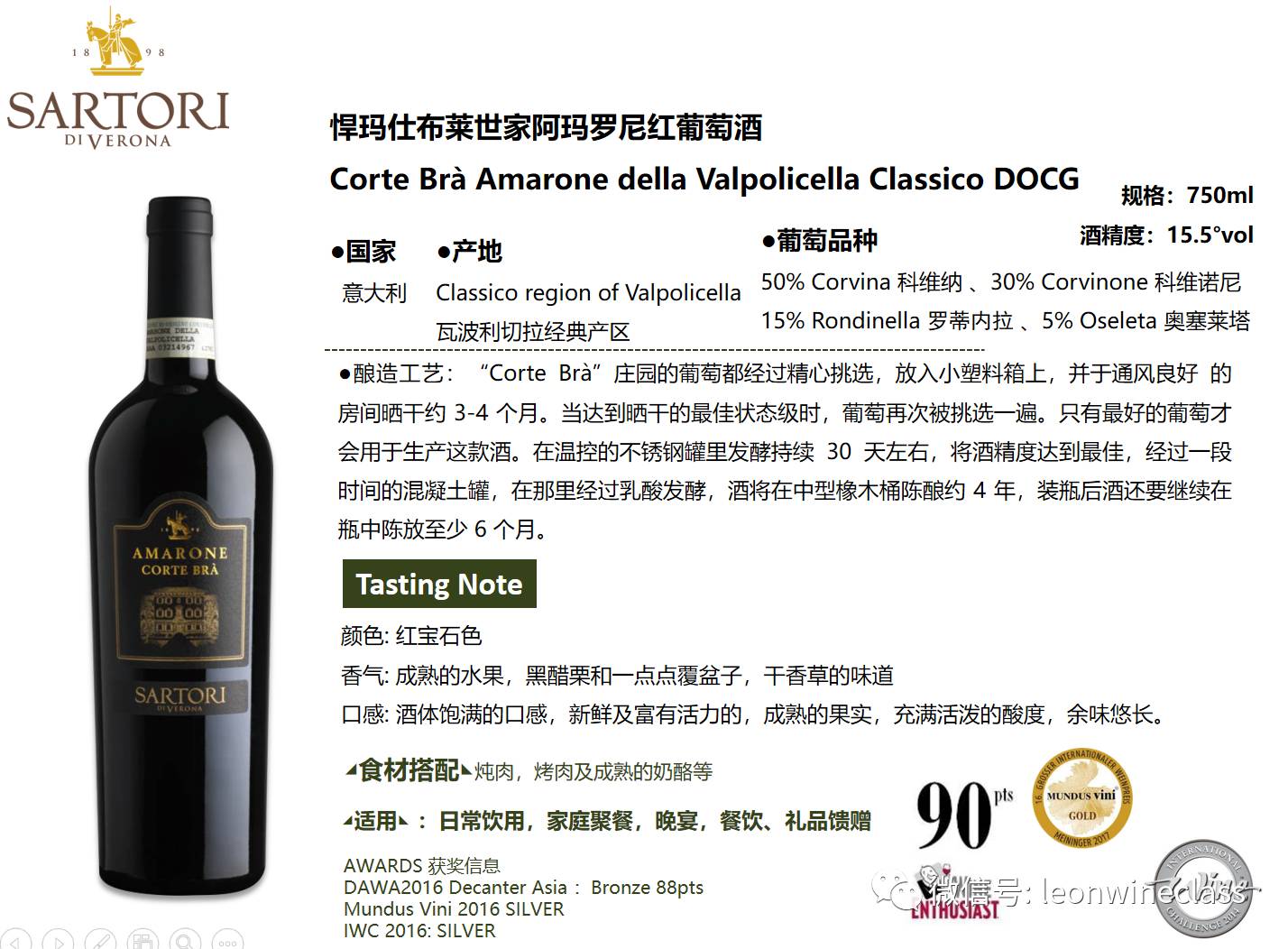 本周日Leon的葡萄酒课堂与天使人生酒廊将联合组织一场意大利顶级佳酿Amarone的品鉴会。这款酒来自意大利顶级Amarone产区的satori家族,这也是Leon本人最爱的葡萄酒之一。