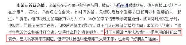 2016年3月,李荣浩录制节目时首认恋情,但杨丞琳的回应也是really含糊啊。