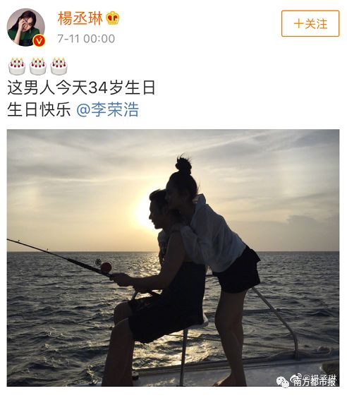 7月11日是李荣浩34岁生日,女友杨丞琳连续第五年卡着零点,给男友发生日祝福。