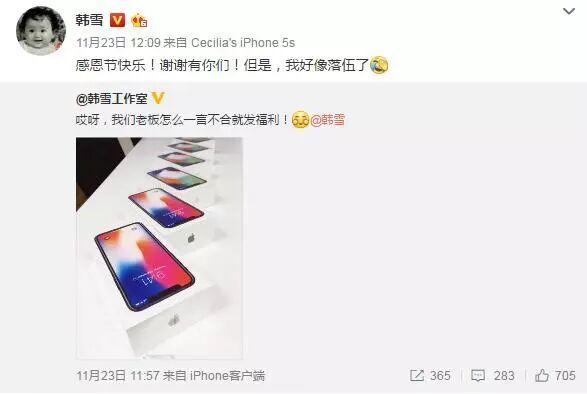 当她会在自己还在坚持用5S 的情况给自己的员工买iPhoneX,实在不能用了才给自己换了新手机。