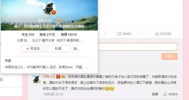 连知名的情感博主都忍不住夸赞,“我觉得你真的是娱乐圈里少有的又有才华人品又好的明星了” ,还感慨到“娱乐圈这么优秀的艺人真的不多了”。