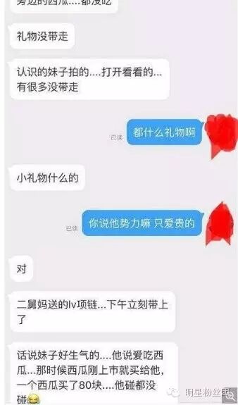虽然这也可能是因为带不下之类的,但是丢在那边都不拆开还是不太好吧?怎么说也是粉丝的一片心意,而且说只收贵的,lv的项链立马就戴上了,还真识货。这种情况不是只是说是黄致列一个人,粉丝有多疯狂是见识过的,但是明星这样的行为不知道大家怎么看?