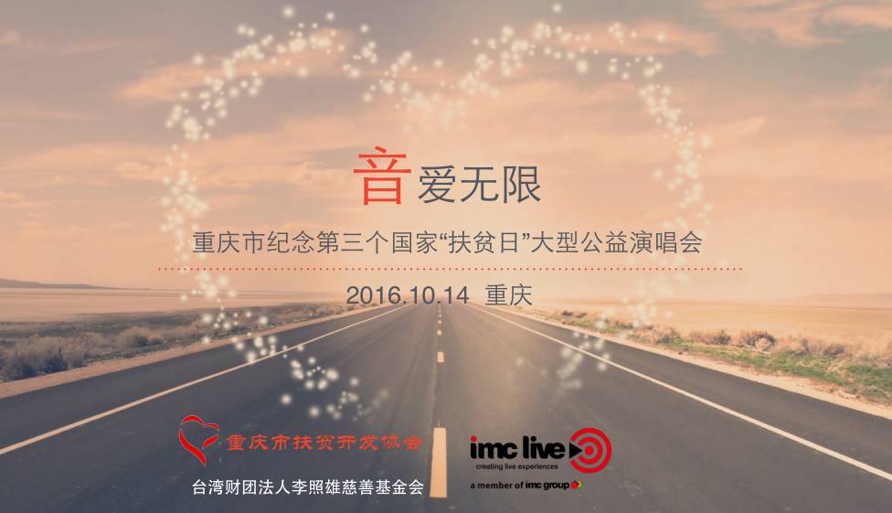 为了纪念第三个国家扶贫日,由重庆市扶贫开发协会与台湾财团法人李照雄基金会联合主办的2016“音爱无限”大型公益演唱会将于10月14日晚8点在重庆人民大礼堂举行。